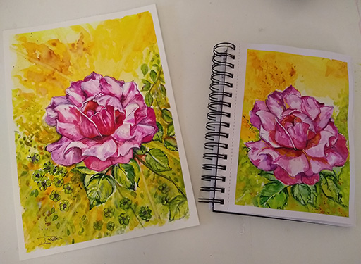 Filling my A5 Sketch pad with floral paintings. I have been snapping images of the roses that grow in my garden. These are different compositions and close ups. I am trying to capture those shades and tones of yellows in the roses.